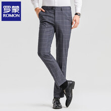 罗蒙休闲西裤男夏季薄款直筒修身青年商务休闲英伦男裤网格西服裤子 灰色格纹 165