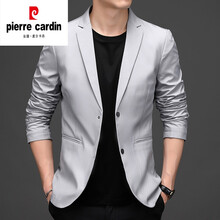 皮尔卡丹轻奢品牌 2021春季休闲西服男修身小西装轻薄便装单西男士薄款上衣潮针织 灰白色 170/M