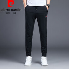 皮尔卡丹轻薄冰丝休闲裤男夏季透气网眼速干裤子弹力修身坠感系带束脚长裤针织 黑色 29