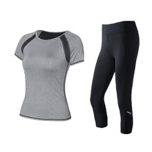 斯泊恩瑜伽服女套装夏季新款专业高端健身房运动套装宽松大码修身户外晨跑锻炼跑步服两三件套 麻灰上衣+中裤两件套 XL