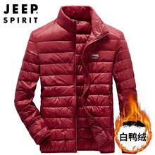 JEEP吉普羽绒服男轻薄服男款白鸭绒新款韩版修身薄款立领秋冬外套8706 红色 XL