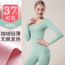 简云 37度恒温薄款保暖内衣女士无痕发热紧身内穿美体莫代尔秋衣秋裤女套装 【女款圆领】抹茶绿 XXL