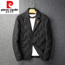 皮尔卡丹男士羽绒服西装刺绣轻薄帅气修身保暖西服短款白鸭绒外套针织 黑色 M