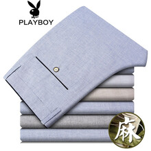 花花公子休闲裤男修身韩版直筒轻薄款透气工装裤青年商务日系显瘦夏天西装裤子加大码中年紧身裤弹力长裤子潮 H19120浅蓝色 31