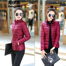 棉服棉衣棉袄冬装女士 2020新款棉服棉衣女短款韩版大码修身轻便轻薄丝棉棉服外套棉袄女 酒红色 2XL