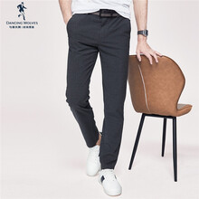 【轻薄透气】与狼共舞条纹休闲裤男2021夏季新款男士直筒修身男装裤子4201 深花灰016 35/90A