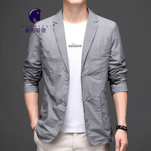 GonoFeci轻奢品牌男装轻薄西服男修身中青年夏季超薄防晒单层西装韩版透气休闲单西外套2021新款 灰色 190