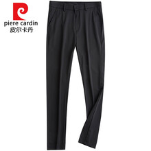 皮尔卡丹高端轻薄透气冰丝休闲裤男夏季薄款修身直筒弹性男士西裤 黑色 29