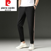 皮尔卡丹【高端轻奢】品牌 夏季桑蚕丝休闲卫裤男轻薄款冰丝运动长裤修身长裤力束脚裤针织 黑色 XL
