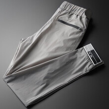 格纹时尚男士灰色休闲裤修身夏季薄款亲肤透气九分收口束脚裤子男 灰色HK-CS19009 4XL