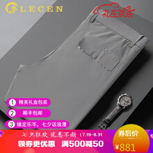 LECEN乐岑高端品牌夏天冰丝休闲裤男休闲修身小直筒轻薄透气弹力垂感凉爽运动薄款系扣长裤2021男装 灰色 29