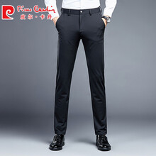 皮尔卡丹高端品牌男装 冰丝凉感休闲裤男士夏季直筒修身轻薄商务西装裤弹力抗皱速干长裤子针织 黑色 29