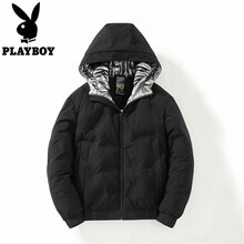 花花公子冬季羽绒服男休闲外套冬装韩版潮流修身男士连帽外套保暖轻薄羽绒服潮牌青年男装上衣 Y81925黑色 XL