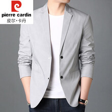 皮尔卡丹男士秋装外套上衣单件轻薄小西服上身单西服休闲西装修身春秋季针织 灰色 175/L