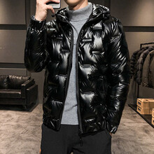 范戈堡2020新款亮面羽绒服男短款青年韩版修身轻薄保暖潮牌时尚连帽外套 黑色 M