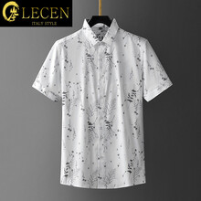 LECEN乐岑轻奢品牌衬衫男短袖2021夏季轻薄寸韩版修身帅气潮流印花商务免烫半袖衬衣高档男装 白 L