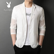 花花公子休闲西装男轻薄款夏季商务衣韩版潮流上衣小西装修身单件外套 白色 170