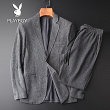 花花公子西服套装男修身韩版2021春季休闲潮流英伦风男士小西装轻薄款外套 TZ1802套装灰色 165S