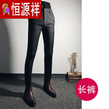 恒源祥彩羊(高端轻奢)垂感商务休闲西裤男黑色弹力小脚裤男士刺绣长裤韩版修身西装裤子商场同款 黑色-长裤 33