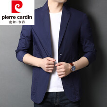 皮尔卡丹 轻奢高端夏季轻薄防晒衣服男士小西装款外套休闲修身单西商务西服潮针织 蓝色 170/M