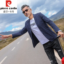 皮尔卡丹男士夏季西服休闲便西轻薄款小西装中年爸爸韩版修身春秋防晒外套针织 藏青色 170/M