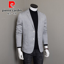 皮尔卡丹春季轻薄亚麻西服男修身韩版商务休闲潮流男士小西装外套单西上衣针织 HX-19037灰色 170M