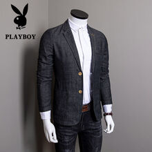 花花公子旗舰官方店牛仔西服男修身韩版潮流春季轻薄做旧男士休闲小西装外套日系复古 HX1827黑色 175L