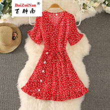 百醉南小个子连衣裙气质修身可甜可盐裙子法式碎花连衣裙女时尚温柔风少女生轻熟穿搭女士别致很仙法式 红色 M