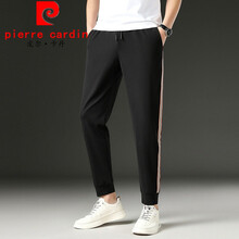 法国皮尔卡丹夏季桑蚕丝休闲裤子男轻薄款冰丝运动休闲裤直筒修身长裤力束脚裤针织 黑色 M