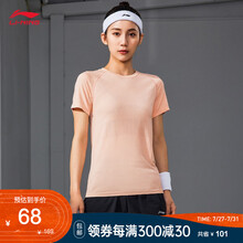 李宁短袖T恤2021夏季新品女子圆领修身健身服女跑步训练系列透气舒适运动上衣官方旗舰网ATSR366 浅橘粉色-5 L