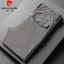 皮尔卡丹品牌男装 夏季透气细条纹四面弹力休闲男休闲修身小直筒冰丝轻薄运动长裤针织 灰色 29