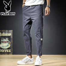 花花公子2021年夏季薄款休闲裤男修身百搭棉弹力轻薄显瘦长裤子韩版 802灰色 28