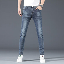 新品夏季薄款牛仔裤男修身韩版小脚裤弹力水洗浅蓝色牛仔长裤百搭紧身铅笔裤潮ins冰丝轻薄窄脚裤新款男裤 图片色 36码