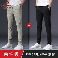 俞兆林旗舰夏季轻薄款冰丝运动休闲长裤子修身小脚男裤2021年新款潮商务西裤 936卡其+936黑色 28