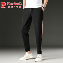 皮尔卡丹高端品牌男装 夏季桑蚕丝休闲卫|裤男轻薄款冰丝运动长裤直筒修身长裤力束脚裤针织 黑色 M