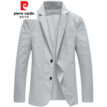 皮尔卡丹品牌高档男装 男装休闲西装新款男士春夏季轻薄小单西外套男青年修身西服针织 白色 170/88A
