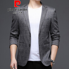 皮尔卡丹轻奢品牌薄款西服男休闲西装男士韩版修身潮流时尚西服外套2021年秋季新款轻薄潮上衣针织 灰色 170