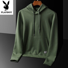 花花公子品牌高端男装 白色连帽卫衣2021新款修身纯色轻薄外套男春秋青年带帽休闲上衣潮 军绿色 XL