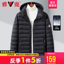 雅鹿羽绒服男2021冬季新品中青年休闲轻薄短款保暖修身韩版连帽外套男 黑色 180
