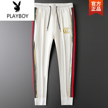 花花公子旗舰官方店 轻奢男装冰丝2021夏季轻薄款潮流拼接九分休闲裤修身束脚裤 TS1108白色 M