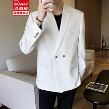 北极绒 男装休闲西装2021新款男士春夏季轻薄小单西外套男青年修身西服轻熟风男装 白色 XL(身高170-185cm/135-145斤)