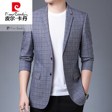 皮尔卡丹高端男装 质感仿亚麻休闲西服男上衣单件修身小西装外套轻薄单西针织 AL--X5819格子 180