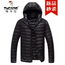 啄木鸟 秋冬轻薄羽绒服男立领短款大码连帽超薄轻便中青年修身休闲外套潮 黑色 XL