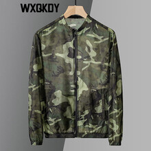 WXQKDY潮牌轻奢夹克男 2021夏季新款男士韩版潮流修身立领迷彩上衣男时尚青年轻薄透气夹克外套男 绿迷彩 M