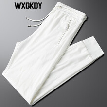 WXQKDY潮牌轻奢休闲裤男 夏季新款男士个性提花修身白色束脚裤男潮流青年轻薄口袋拉链运动休闲裤男装 白色 28