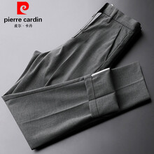 皮尔卡丹轻奢品牌 轻商务男士西装裤夏季2021轻薄冰丝免烫九分裤修身小脚灰色休闲裤潮针织 灰色 28