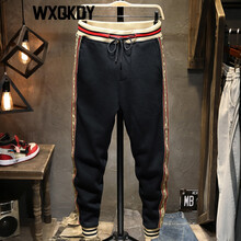 WXQKDY潮牌轻奢休闲裤男 夏季新品男士个性侧边印花修身束脚裤男潮流青年轻薄百搭松紧腰黑色休闲裤男 黑色 M