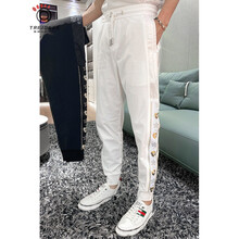 TRE JonES 潮牌夏季新款男士轻薄透气休闲裤男韩版修身个性侧边烫金束脚长裤男百搭印花运动休闲裤 白色 M