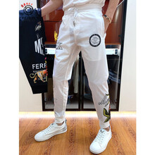 TRE JonES 潮牌夏季新款男士轻薄透气休闲裤男欧美动漫印花修身束脚小脚长裤男百搭印花运动休闲裤 白色 M