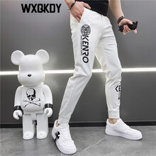 WXQKDY潮牌轻奢休闲裤男 夏季新款男士字母印花修身白色运动长裤男潮流青年轻薄透气松紧腰休闲裤男装 白色 33